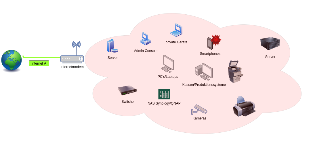 Dreh und Angelpunkt dieser Netze ist meist das Modem des Internetanbieters, an welchem alle Geräte angesteckt werden.